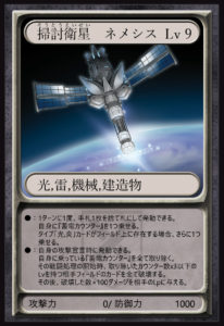 相手パートナーに〈重すぎた鎧〉を装備し、こちらの盤面に〈掃討衛星  ネメシス〉を召喚するという単純なもの。