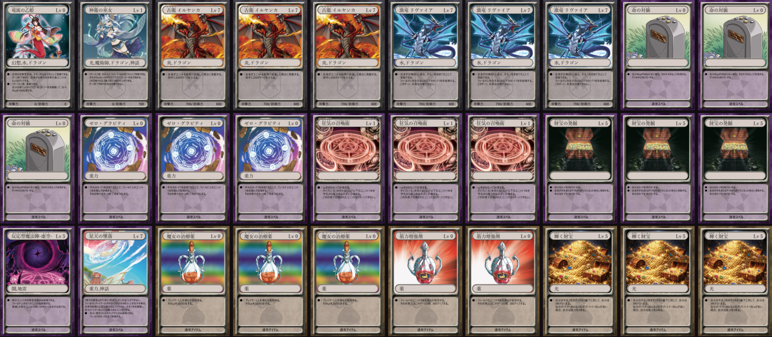 〈狂気の召喚術〉〈神龍の巫女〉の計4枚とドラゴン計6枚を引きたい構築である。